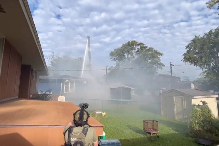 Na snimku se, kako se navodi, vidi kako muškarac otvara vatru na tri osobe ispred svoje kuće, dok jedna beži.
