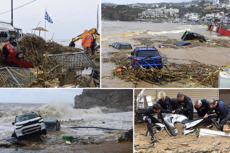Izveštaju medija kažu da je najmanje 10 automobila viđeno kako pluta u moru kod obale Agia Pelagije, koja je izgleda bila najteže pogođena oblast na ostrvu.