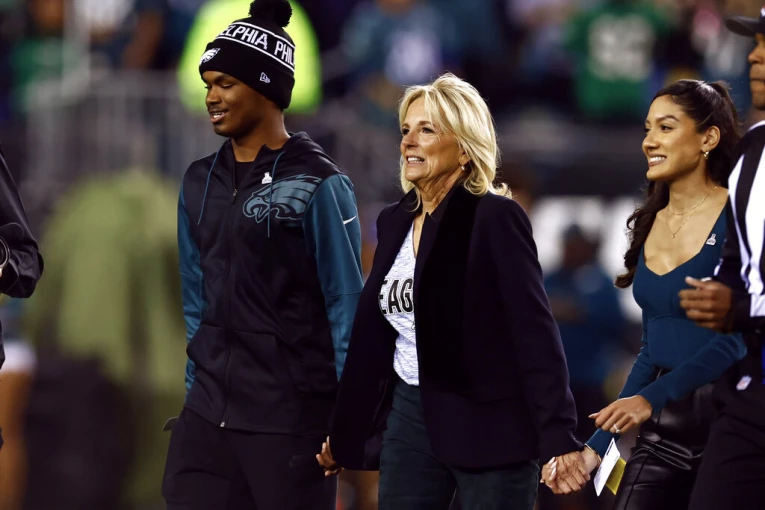 Džil Bajden je imenovana za počasnog kapitena tima Iglsa iz Filadelfije koji su igrali protiv Dalas kaubojsa, a trebalo je da sa navijačima peva i njihovu timsku pesmu.
