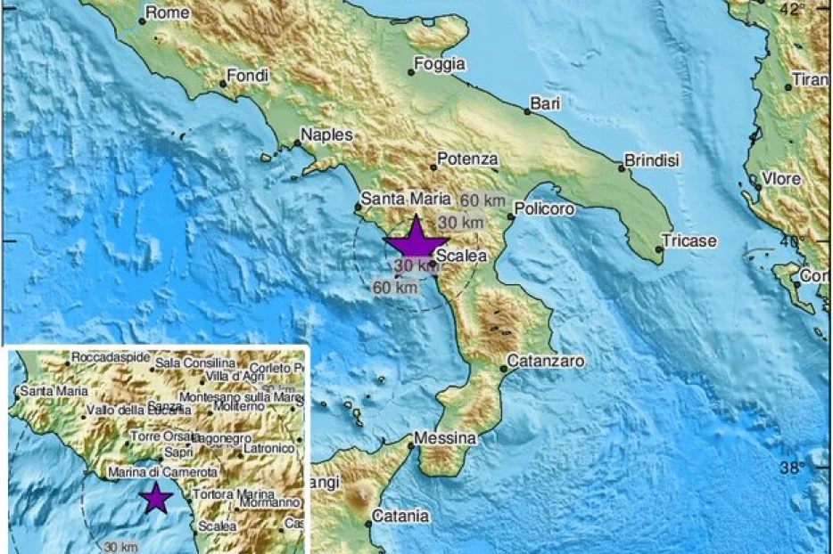 Epicentar je bio 103 kilometara jugoistočno od grada Salerna
