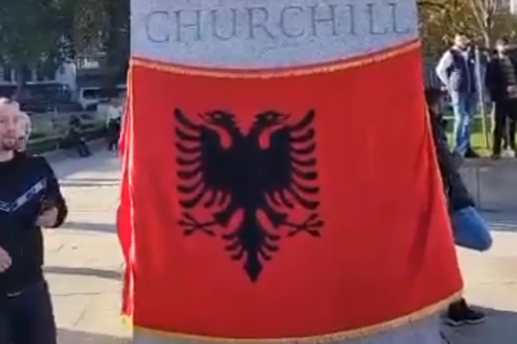 Albanci napravili haos u Londonu, okačili zastavu na Čerčilov spomenik, Faraž besan: Ovo je sramota! (VIDEO)