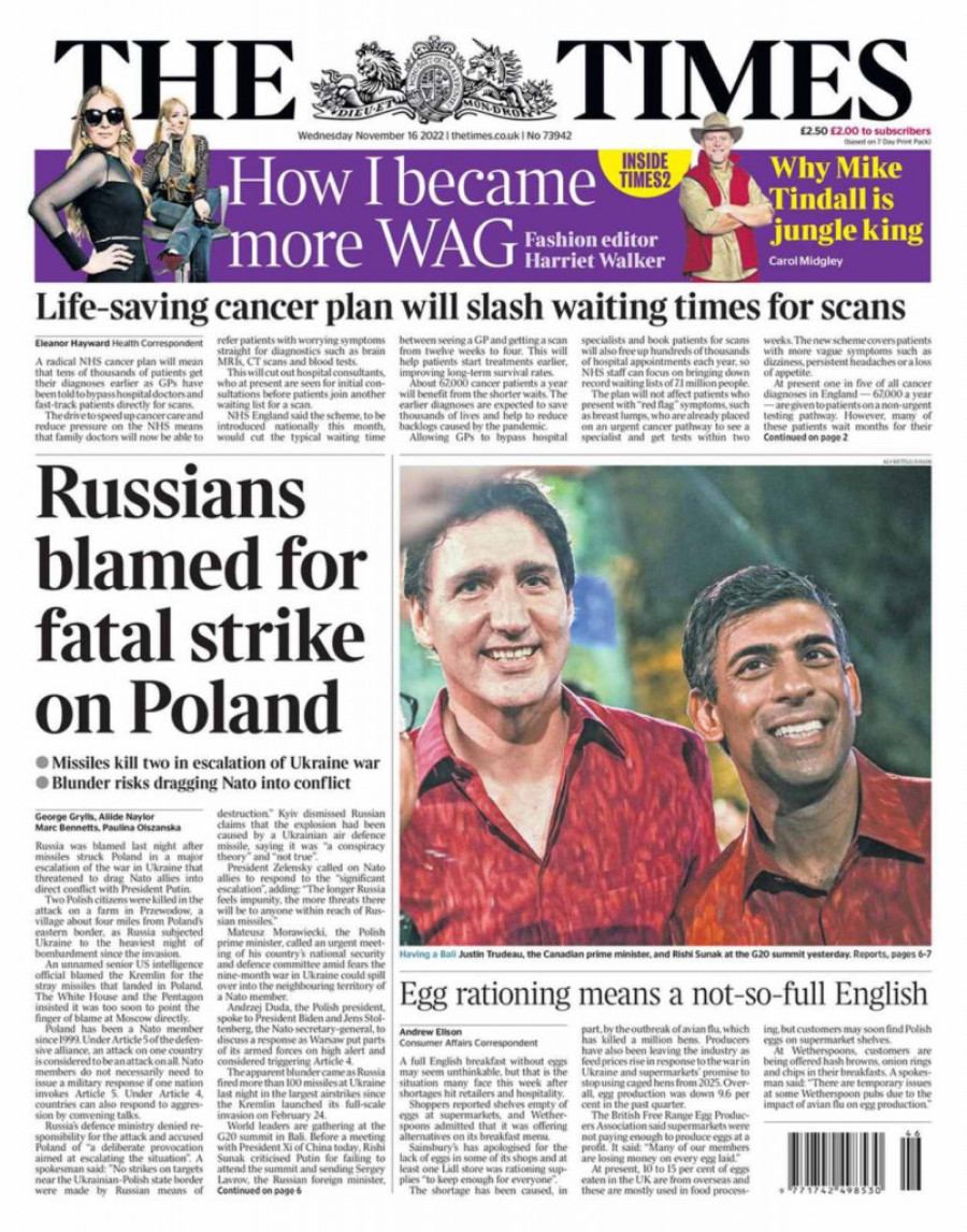 Naslovi poput “Putinov rat se preliva u Poljsku”, “Rusija granatirala Poljsku”, “Ruske rakete uble dve osobe u Poljskoj” ili “Rusi krivci za smrtonsoni napad na Poljsku”, samo su neki od onih koji su se našli na naslovnim stranama najtiražnijih britanskih novina.