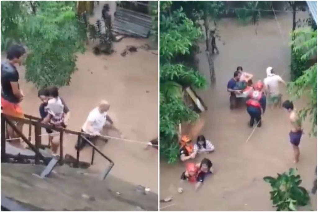 Na snimcima na društvenim mrežama može se videti kako spasioci pomažu stanovnicima da se izvuku iz vode čija dubina doseže do grudi, nakon dvodnevnih jakih padavina u centralnim i južnim Filipinima.