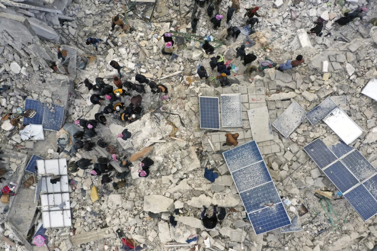 Na jednom od snimaka iz Dane, severno od Idliba, mogu se videti građani kako pretražuju ruševine. Čuju se povici žena i dece kako zapomažu. Ljudi kopaju golim rukama kako bi izvukli svoje sugrađane.
