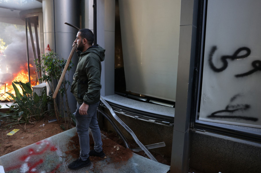 Kasnije je grupa ljudi zapalila predmete ispred kuće, uključujući i ulaznu kapiju, Salima Sfeira, predsednika Udruženja banaka u Libanu.