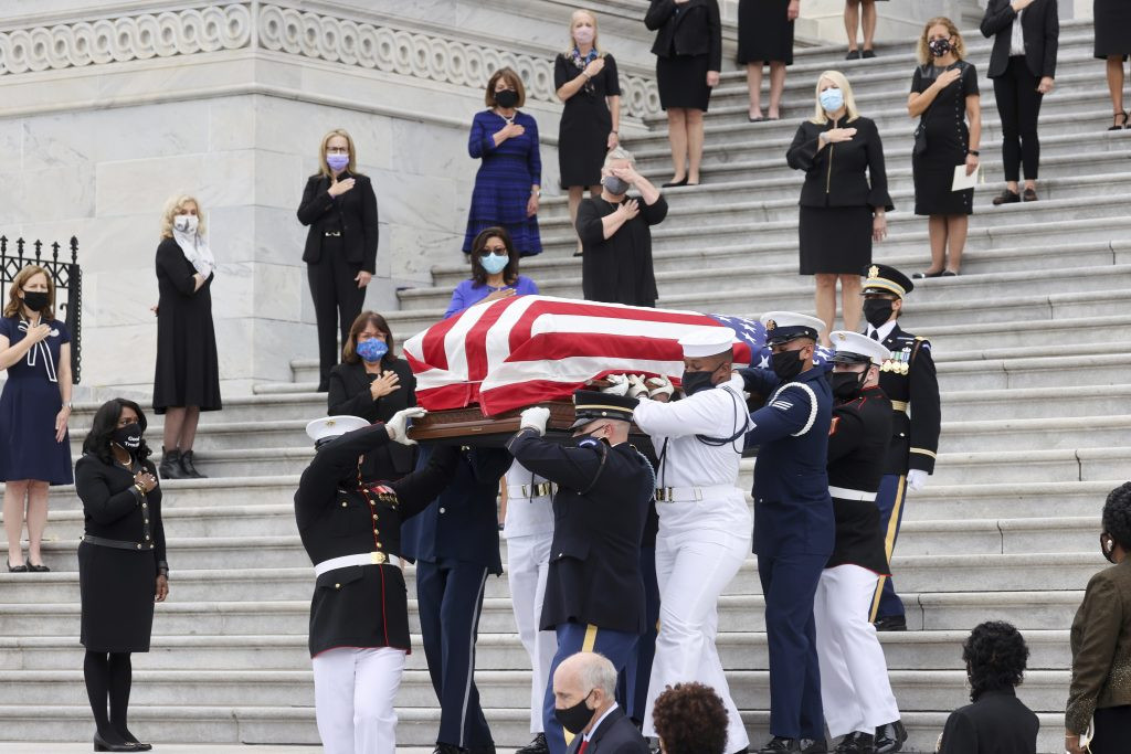 Posmrtni kovčeg Rut Bejder Ginsburg, nedavno preminule sudije Vrhovnog suda SAD, premešten je zgradu američkog Kongresa, čime je postala prva žena u američkoj istoriji kojoj je ukazana takva čast.