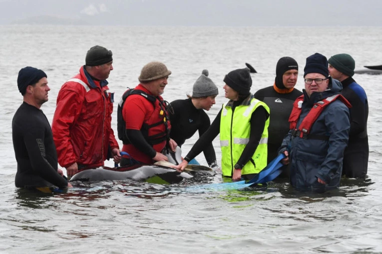 U toku je velika akcija spašavanja svih preživelih kitova među 500 nasukanih duž obale australijskog ostrva Tasmanija.