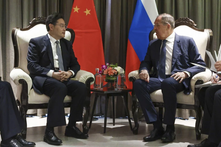 Kina će raditi sa Rusijom na postizanju mira između Moskve i Kijeva, rekao je u četvrtak ministar inostranih poslova Ćin Gang posle sastanka sa ruskim kolegom Sergejem Lavrovom. Diplomate su o tome razgovarale na marginama samita ministara inostranih poslova Šangajske organizacije za saradnju (ŠOS) u Goji u Indiji.