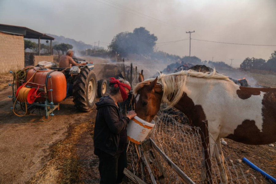 Desetine konja evakuisano je kamionima dok je plamen stigao do štala u obližnjim oblastima Kalivija i Anavisos.