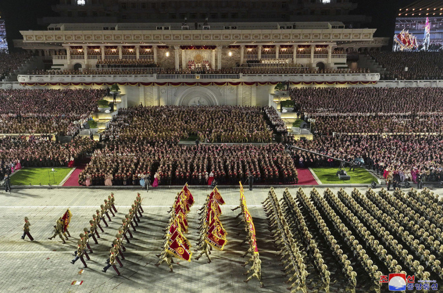 Stojeći između ruskog ministra odbrane Sergeja Šojgua i člana kineskog politbiroa Li Hongdžonga na tribinama, Kim je sa osmehom salutirao dok je hiljade vojnika marširalo pored njih, praćeni najmoćnijim balističkim raketama u zemlji, koji su zabranjeni pod sankcijama UN.
