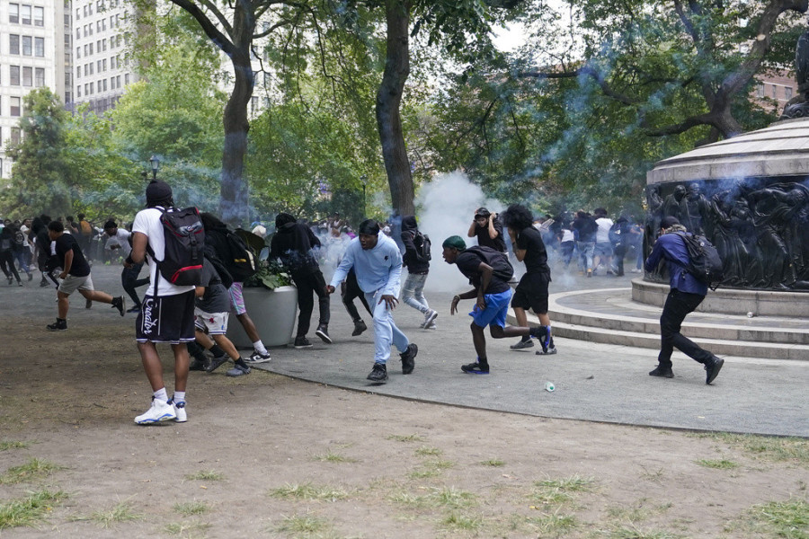 U Njujorku je u petak popodne nastao haos kada se velika gomila okupila na Junion skveru radi nagradne igre koju je organizovao jutjuber Kaj Senat, koji je optužen za podsticanje nereda.