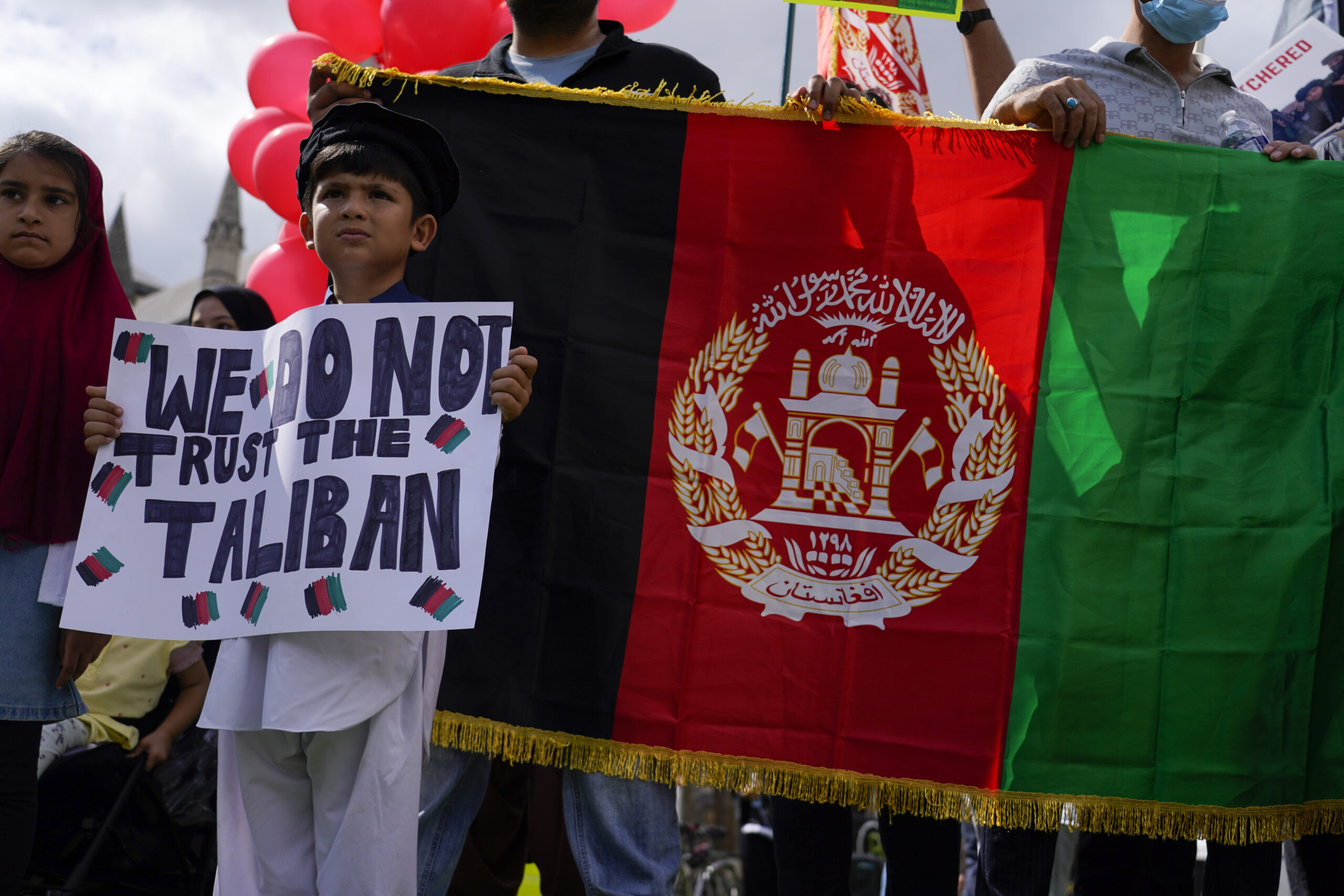 Dete sa natpisom “Ne verujemo talibanima”; Tanjug/AP Photo/Alberto Pezzali