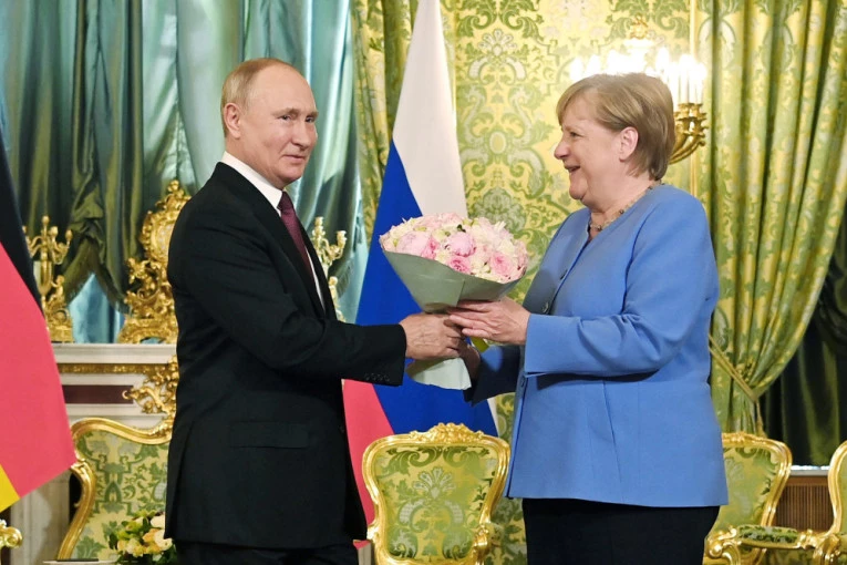 Angela Merkel dobila buket od Putina, pa imala peh: Usred sastanka joj zazvonio telefon (FOTO/VIDEO)