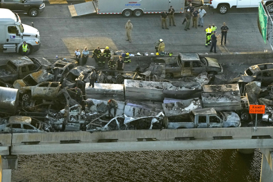 Apokaliptični video snimci prikazuju olupine oštećenih i spaljenih vozila na međudržavnom putu 55 u blizini Nju Orleansa.
