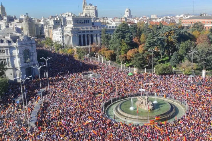 Dan nakon što je Pedro Sančez položio zakletvu i započeo novi mandat na mestu predsednik španske vlade, oko 170.000 ljudi marširalo je ulicama Madrida na do sada najvećem protestu protiv Sančeza i amnestije za katalonske separatiste, na koju su socijalisti pristali u zamenu za podršku katalonskih i baskijskih partija.
