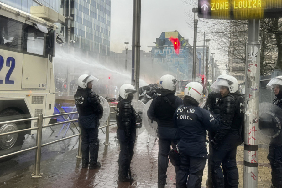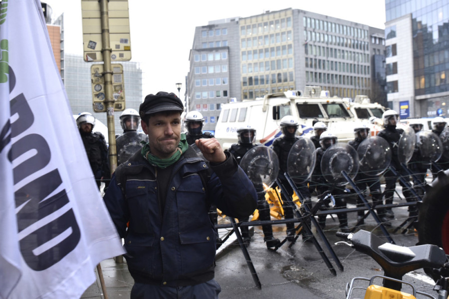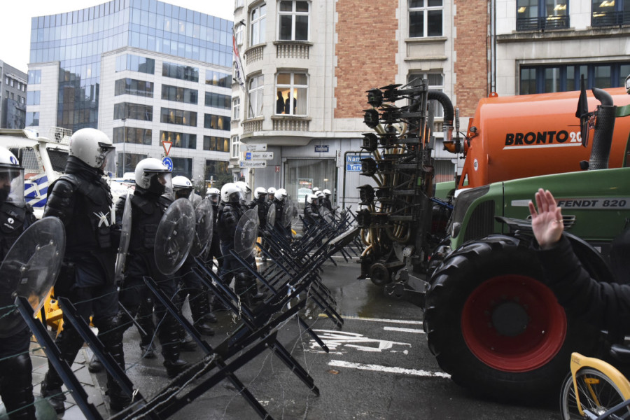 Poljoprivrednici su napravili betonske barijere i bodljikavim žicama su okružili sedište Evropske unije. Traktori su okićeni zastavama i transparentima, a demonstranti bacaju i gume ispred ulaza u zgradu EU.