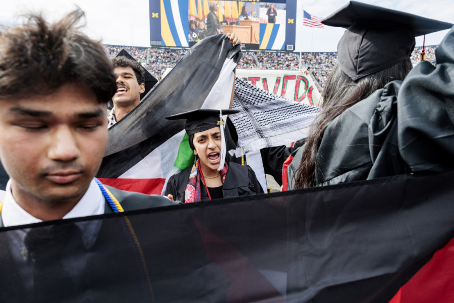 Velika grupa demonstranata održala je u petak uveče protest u kampusu Univerziteta u Mičigenu uz prisustvo policije. Glavna ceremonija za diplomce na Univerzitetu u Mičigenu održana je na stadionu u En Arboru, a zona za proteste određena je izvan mesta održavanja ceremonije. Univerzitet je naveo da će na ceremoniji biti sprovođene bezbednosne provere i da će biti zabranjeno nošenje transparenata i zastava.