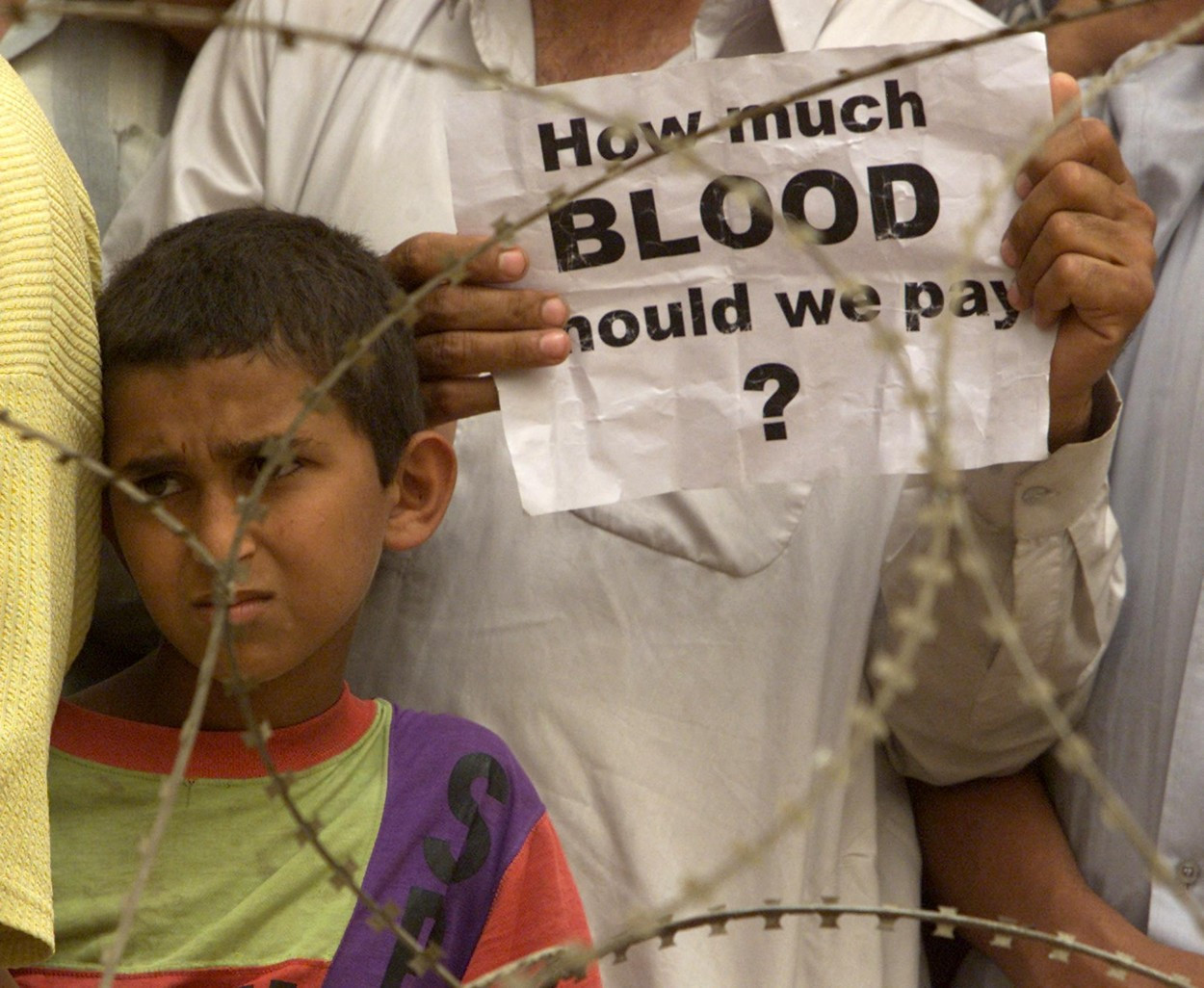 Irački demonstrant sa natpisom “Koliko krvi ćemo još proliti”; Profimedia