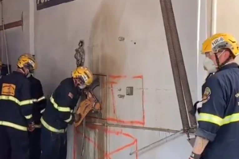 Čuli su se vrisci, ali niko u početku nije mogao da utvrdi odakle dolaze sve dok jedan radnik nije uvideo da je žena zaglavljena u uskom prostoru između dva objekta, širine svega 0,3 metra. Vatrogasci su morali da iseku zid kako bi došli do nje, a pre toga su kamerom utrdili gde se ona tačno nalazi.