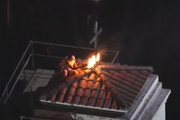 Polugo muškarac se popeo na crkvu i zapalio krst: Policija ga uhvatila tek kad je upao u tuđi stan (VIDEO)