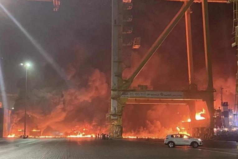 Kontejnerski brod usidren u ogromnoj luci Dubaija zapalio se kasno u sredu, izvestila je kancelarija za medije emirata, izazvavši eksploziju koja je potresla komercijalno čvorište Ujedinjenih Arapskih Emirata.