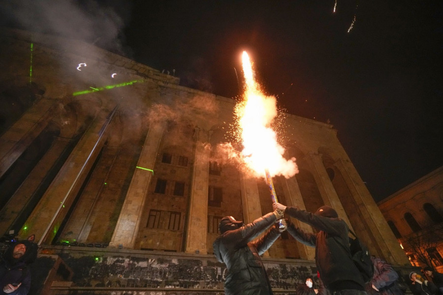 Agencija RIA Novosti je ranije prenela da su demonstranti u Tbilisiju sloganima "okitili" jelku koju su vlasti postavile u blizini parlamenta na aveniji Rustaveli, a u ponoć po lokalnom vremenu su u blizini zgrade ispalili vatromet.