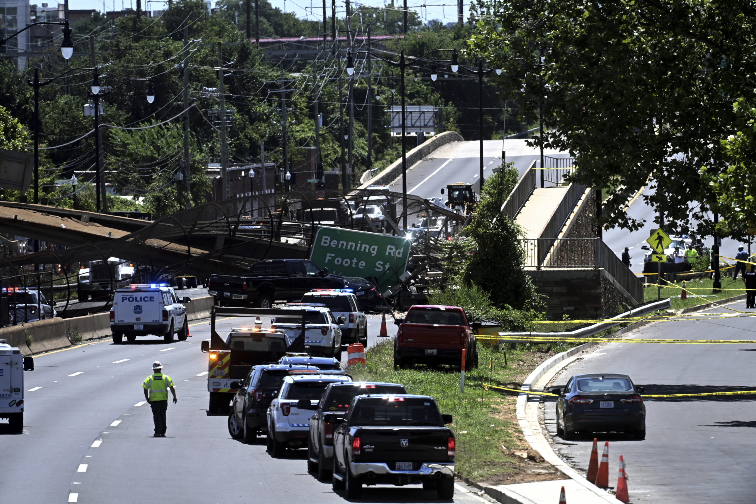 A pedestrian bridge collapsed in Northeast Washington, D.C., Wednesday, leaving at least six people injured and trapping a truck that started leaking fuel, officials say. Four people were taken to hospitals with injuries. pic.twitter.com/gu8b3zrknd
