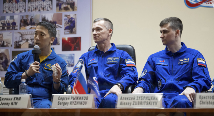 Američki astronaut Kim i ruski kosmonauti Sergej Rižikov i Aleksej Zubricki provešće oko osam meseci na Međunarodnoj svemirskoj stanici.