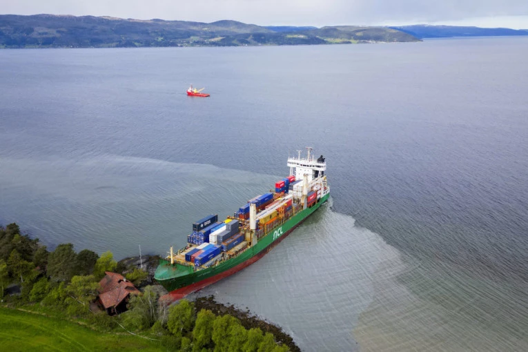 Muškarac iz Norveške se probudio i otkrio da se ogroman kontejnerski brod nasukao i ušao u njegovu baštu.