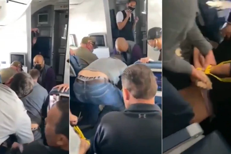 "Zaustavite ovaj avion": Pomahnitali putnik urlao i pokušavao da uđe u kokpit, putnici ga vezali (VIDEO)