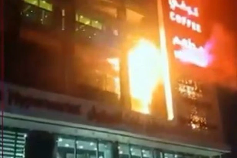 Požar je zahvatio petospratnicu u kojoj se nalazi tržni centar, a video-snimci na društvenim mrežama prikazuju vatrogasce koji pokušavaju da obuzdaju plamen.