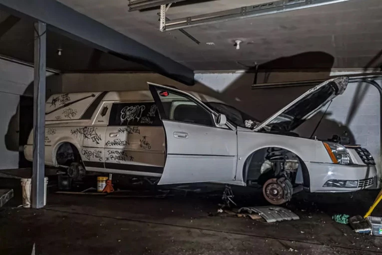 Unutra su zatekli hemikalije, opremu za balzamovanje, kadilak-karavan i tragove vandalizma.