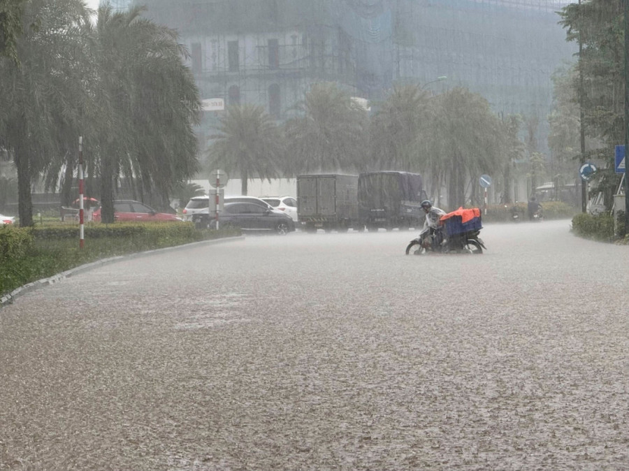 Padavine nisu jenjavale ni u utorak ujutro, pa su ulice Hanoja bile pod vodom, a najveće gradsko jezero izlilo se iz korita.