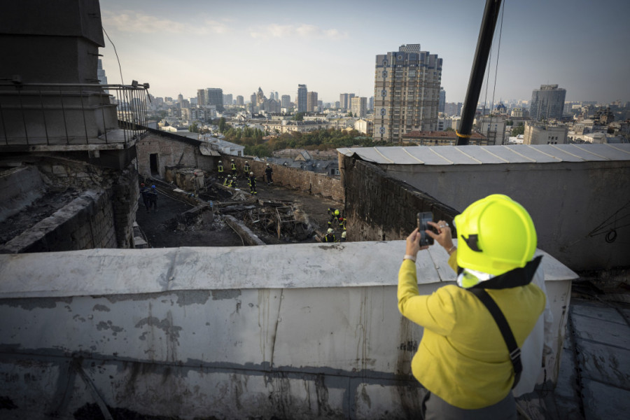 Zgrada je pogođena bojevom glavom od 450 kilograma koja nije eksplodirala tokom masovnog ruskog napada na prestonicu u subotu uveče.