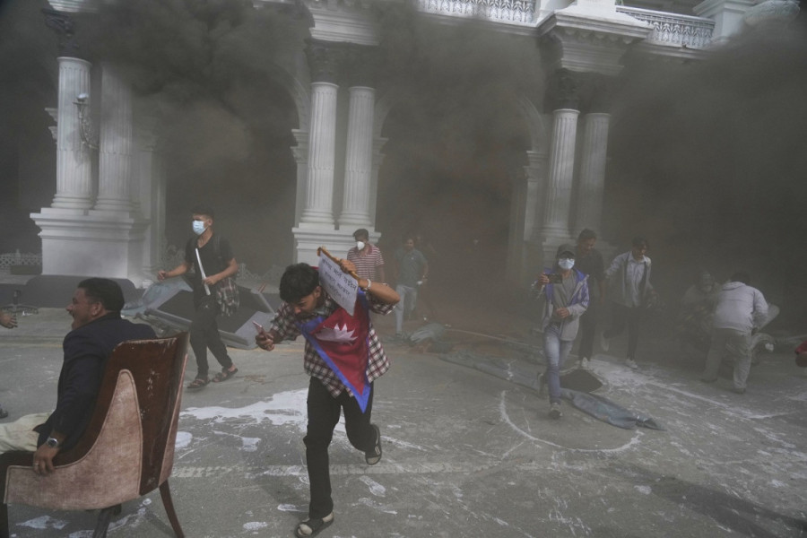 Tokom protesta zapaljene su državne institucije, uključujući parlament, zgradu Vrhovnog suda i kuće ministara, kao i privatna rezidencija bivšeg premijera. Na meti demonstranata našli su se i poslovni objekti - među njima najveća privatna medijska kuća "Kantipur" i više hotela u Katmanduu i Pokari.