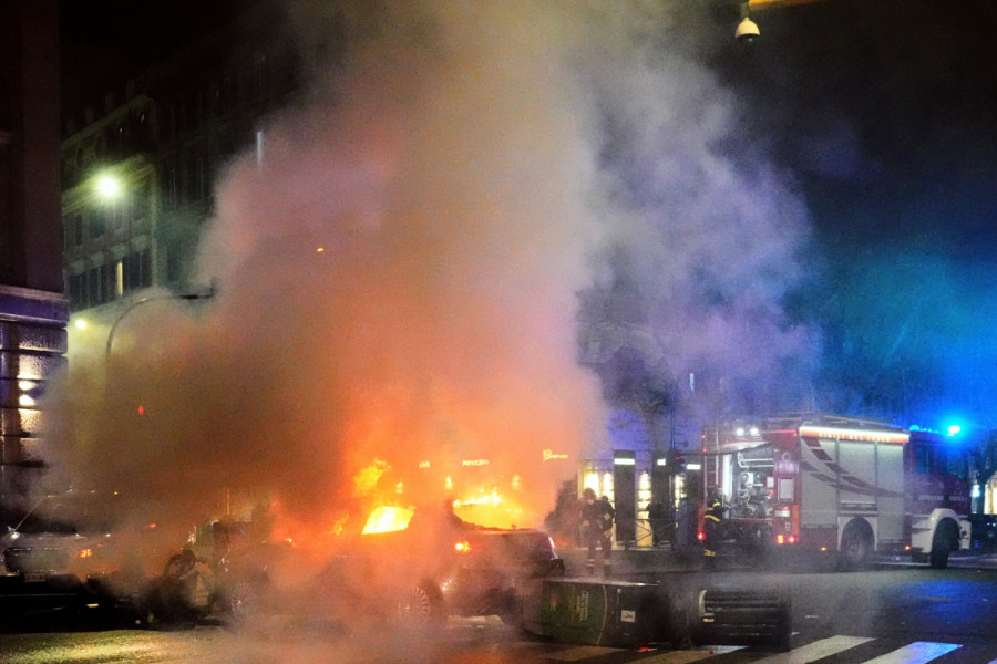 Učesnici sinoćnjeg protesta bacali su predmete i petarde na policiju, zapalili dva automobila i nekoliko kontejnera, prenela je danas agencija Nova.