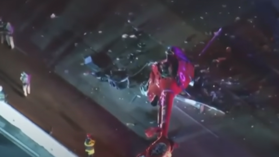 Snimci sa mesta nesreće prikazuju smrskani helikopter kako leži prevrnut na kolovozu. Iako se nesreća dogodila na prometnom autoputu, nijedno drugo vozilo nije učestvovalo u incidentu.