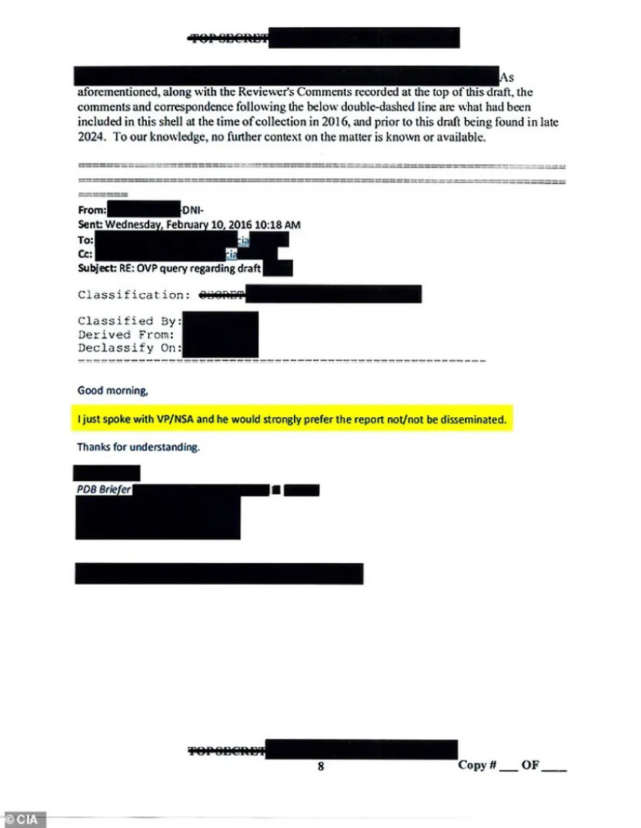 Jedan deo Retklifovog saopštenja otkriva da je Bajdenov tim poslao imejl u kom piše da bi tadašnji potpredsednik "više voleo da se izveštaj ne distribuira".