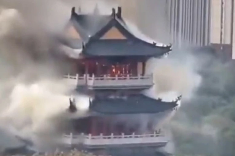 Požar je izbio u paviljonu Venčang na planini Fenghuang u Džangđijagangu, provincija Điangsu, 12. novembra.