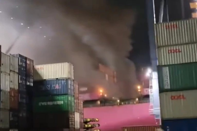 Proglašeno vanredno stanje! Požar buknuo u luci, gori veliki brod (VIDEO)