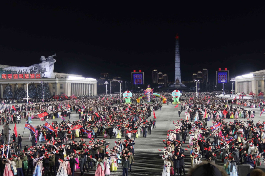 Severnokorejski lider Kim Džong Un prisustvovao je proslavi Nove godine u Pjongjangu koja je uključivala vatromet, patriotske pesme i plesove, javila je danas državna agencija KCNA.