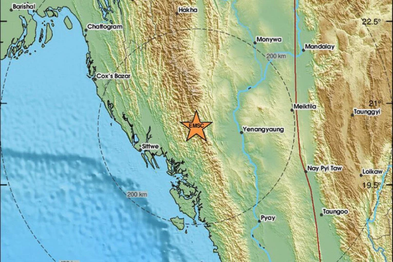 Zemljotres magnitude 6 stepeni po Rihterovoj skali zabeležen je u utorak, 3. februara 2026. godine u 16,34 časova, na području Mjanmara.