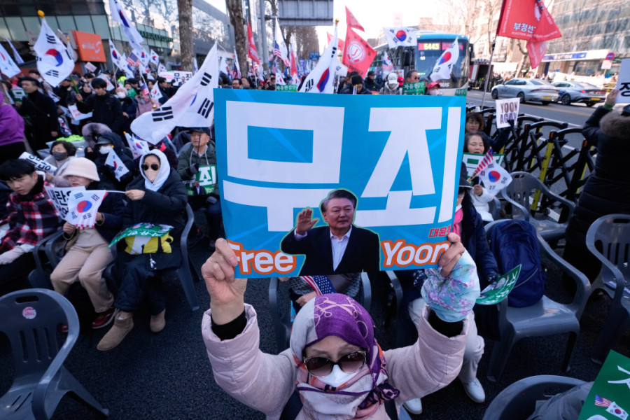 Više od 100 njegovih pristalica okupilo se ispred suda, uzvikujući parole podrške i mašući zastavama Južne Koreje i SAD, dok je oko 80 njih održalo celonoćni skup tražeći njegovo oslobađanje. Krajnje desničarske grupe, uključujući Uniju slobode, najavile su miting sa oko 4.300 učesnika u blizini sudskog kompleksa. Istovremeno, građanske i progresivne organizacije, među njima i grupa "Candlelight Action", planirale su okupljanje oko 5.000 ljudi kod stanice Seočo, pozivajući na Junovu osudu.