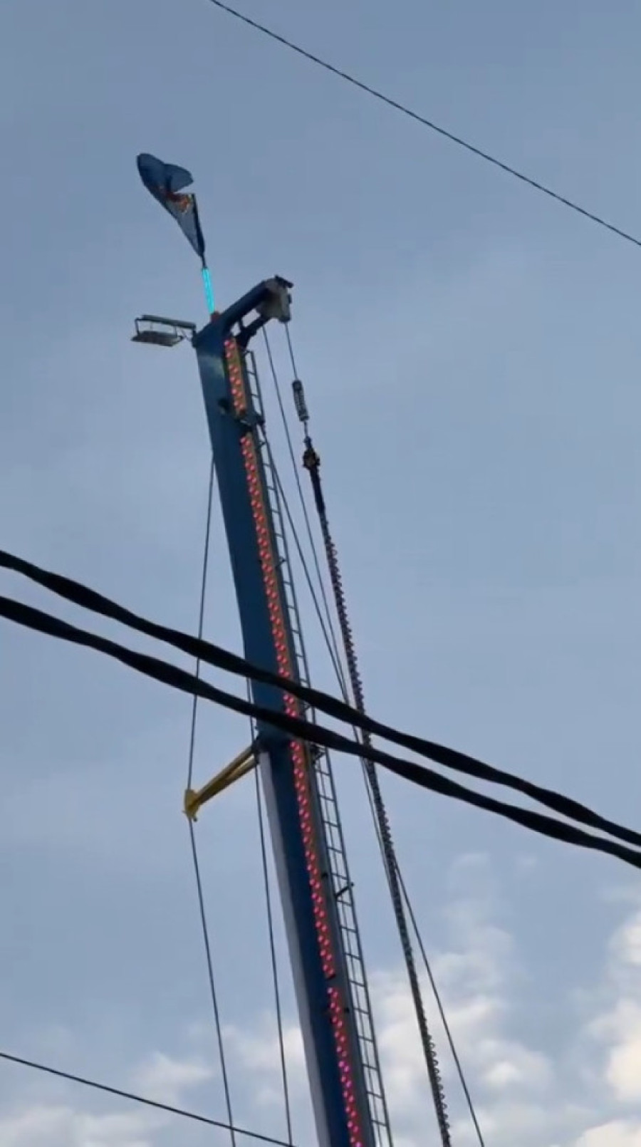 Kako prenose strani mediji, a što se vidi i na snimcima sa društvenih mreža, deca su ostala zaglavljena u kapsuli na velikoj visini, dok je konstrukcija vožnje udarala u noseće stubove. Kapsula se, prema navodima, kretala brzinom od oko 160 kilometara na čas kada je jedna od dve sajle pukla pred očima posmatrača, koji su u panici počeli da vrište.