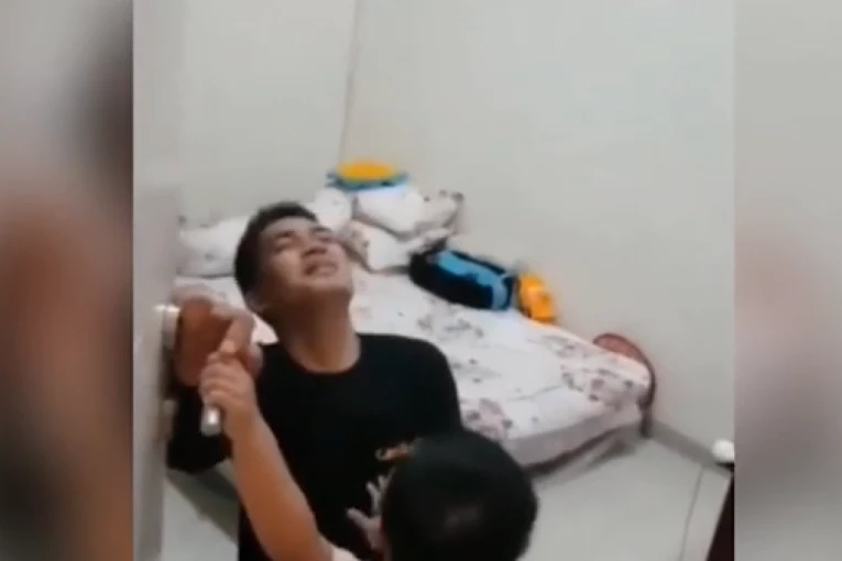 Na snimku se vidi dvogodišnji Aska, sin poručnika Imama Adija (29), kako ocu ne dozvoljava da izađe iz spaveće sobe, zatvarajući vrata jednom rukom, dok drugom pokušava da ga odgurne nazad, prenosi “Daily mail”.