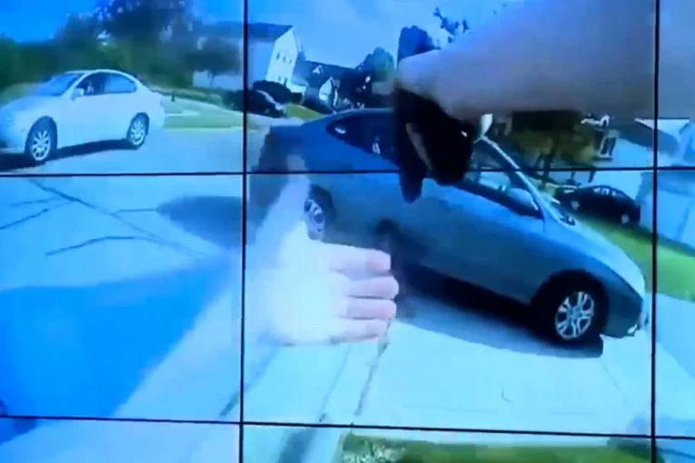 Policijski snimak pokazuje haotičnu scenu na travnjaku ispred kuće, jednu devojku kako zamahuje nožem na drugu, koja je pala na leđa, da bi zatim krenula na drugu devojku, koja se srušila na parkirana kola. Policajac je tada otvorio vatru.