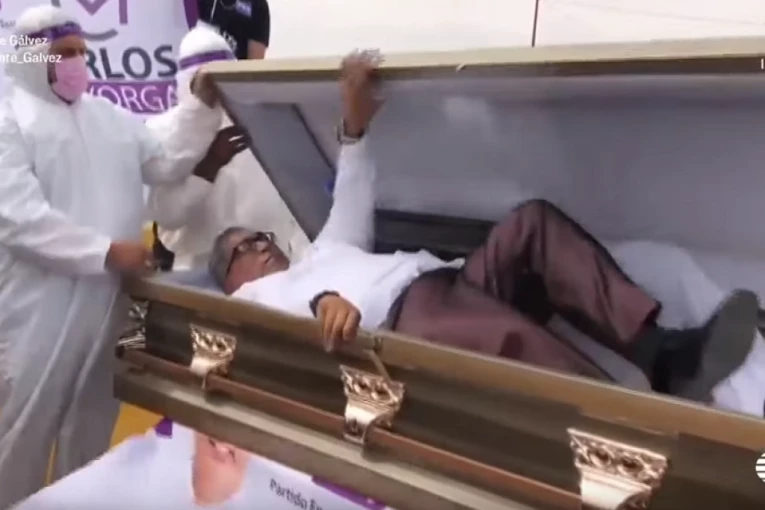 Karlos Majorga, kandidat na lokalnim izborima u Meksiku, svoju političku kampanju je pre nekoliko dana započeo iz otvorenog kovčega, upozoravajući na taj način na stopu nasilja u gradu Huarezu, koji je, zbog kombinacije pandemije i nemara aktuelnih vlasti postao “grad mrtvih”.