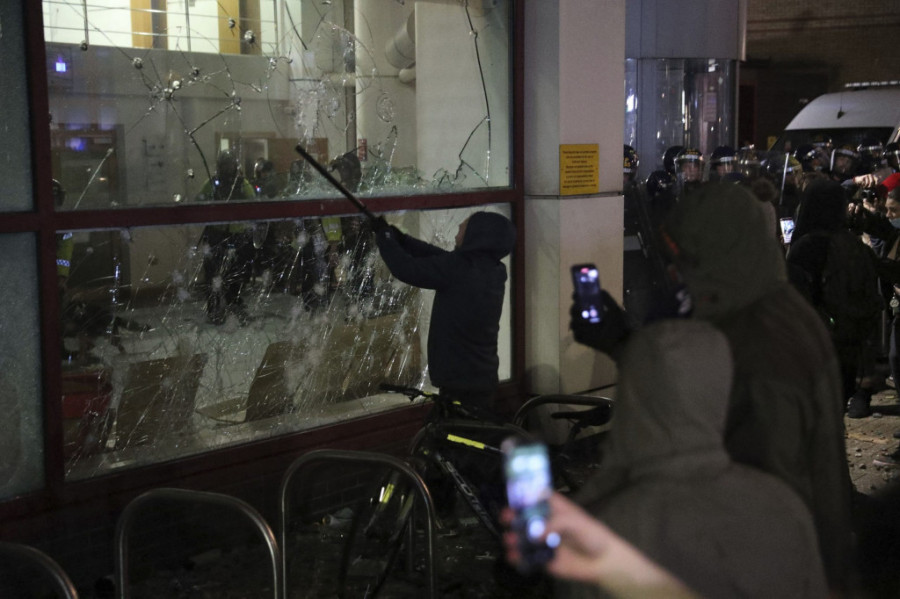 Police hold back people outside Bridewell Police Station, in Bristol, England, Sunday tanjug/Andrew Matthews/PA via AP)