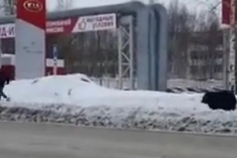 Bizarna priča, sa nekoliko zaista ludih slika, pojavila se u sredu u gradu Nižnjevartovsk, Meštani su bili zbunjeni nakon što su ujutru bili svedoci ove slike – mrki medved koji trči ulicom.