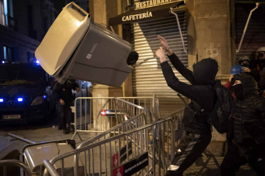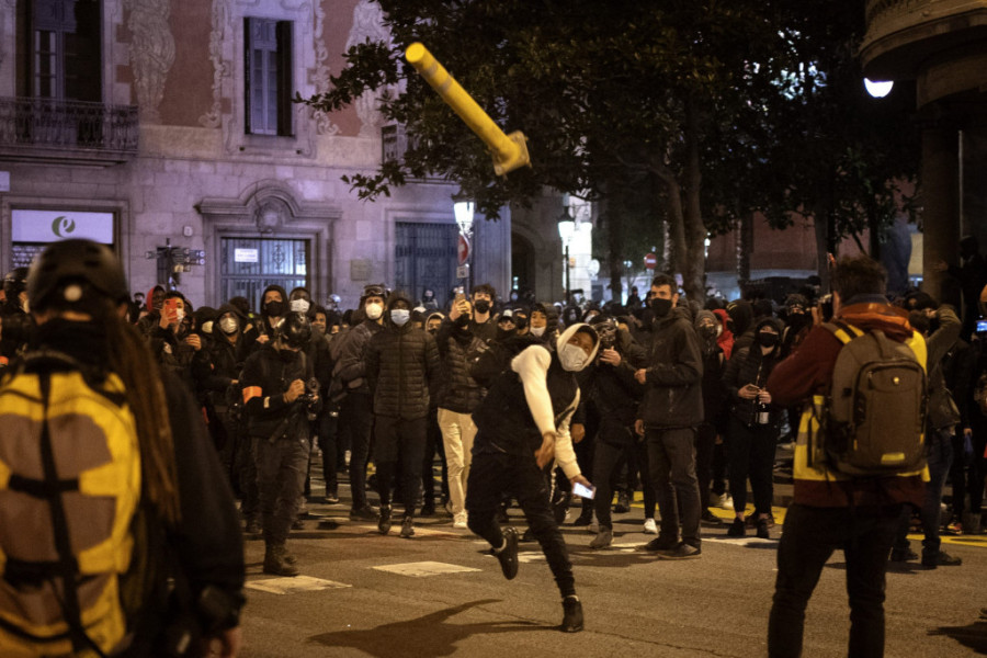 Ali kako je padala noć, napetost se povećavala dok su demonstranti uglavnom obučeni u tamnu odeću marširali centrom grada do sedišta Nacionalne policije. Posle pola sata zasipanja kamenjem, flašama, otpadom i petardama, katalonska policija aktivirala se i počela da razbija protest.